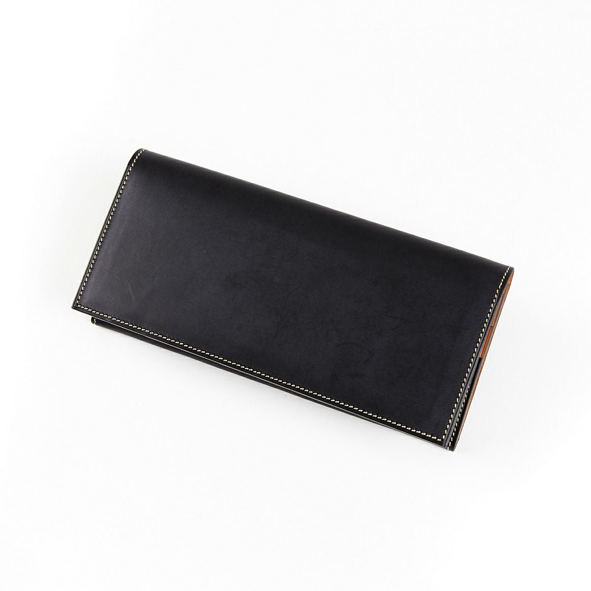上質な水染めコードバンを使用したオーソドックスなデザインの長財布。