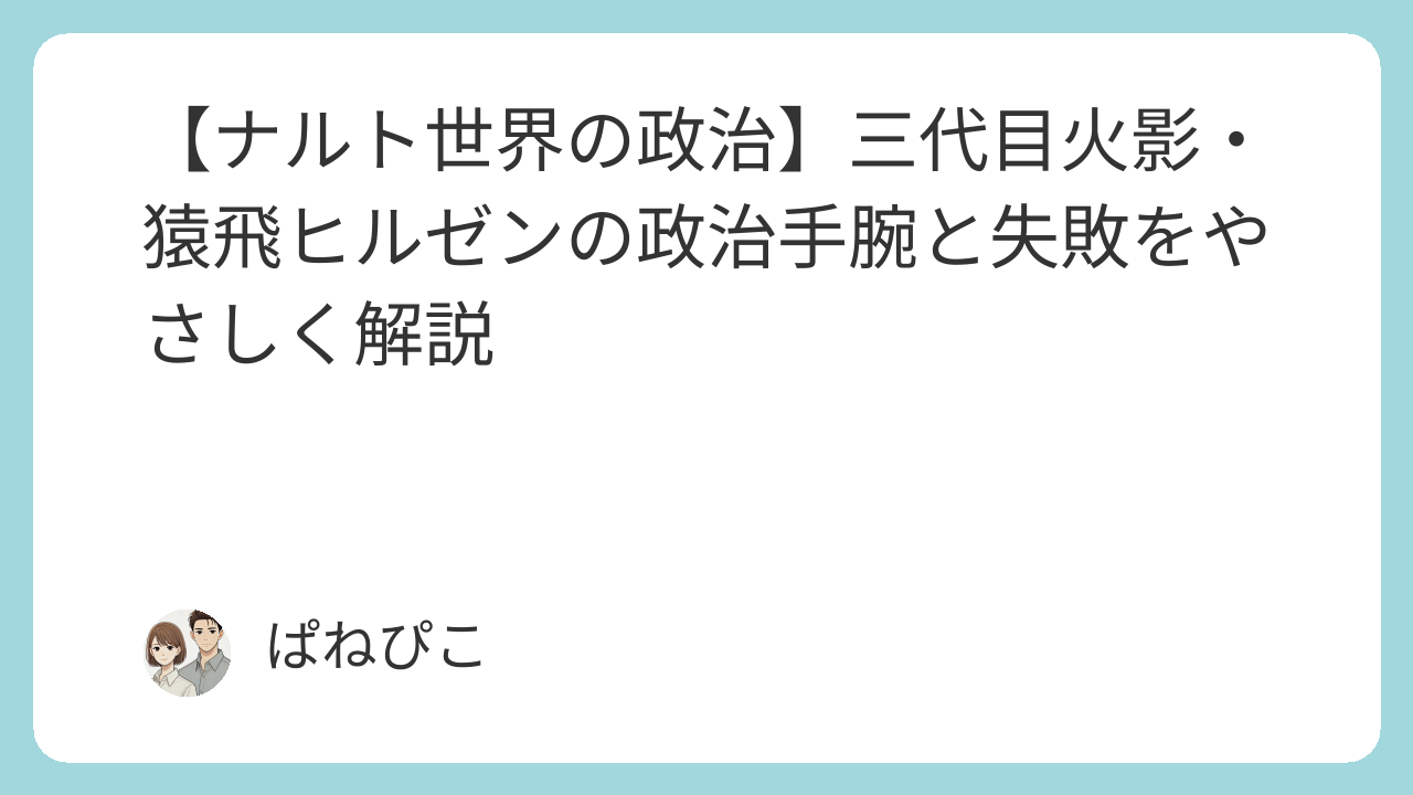 扉間が「制度の政治家」なら、ヒルゼンは「人の心の政治家」だったのです。