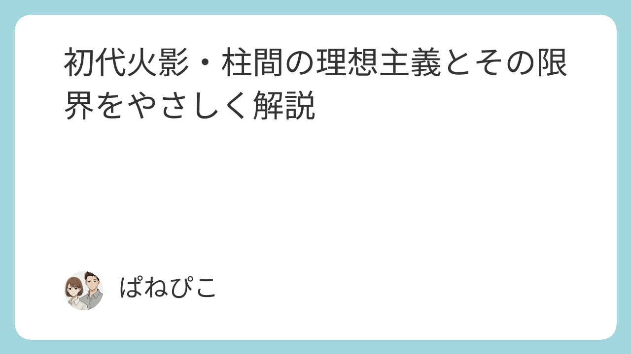 千手柱間は、争いの時代に「愛と信頼で平和を築く」という最も難しい夢を実現しようとした男です。