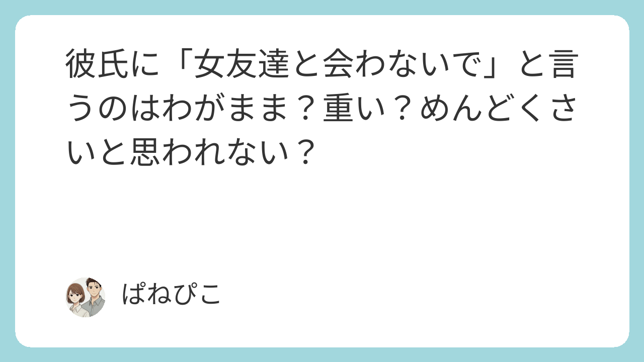 「彼氏に“女友達と会わないでほしい”って言ったら重いかな?」