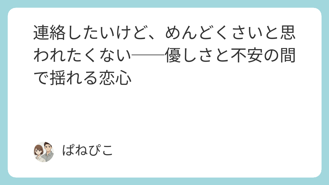 連絡したいけど、めんどくさいと思われたくない──優しさと不安の間で揺れる恋心